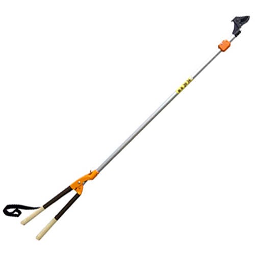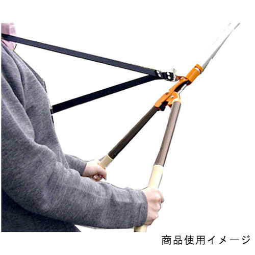 伸縮レバー操作で先パイプが伸び、3段階の長さで使えます。太い枝も軽い力で切る事が出来ます。刃は耐久性の高い高級刃物鋼を使用し、生木約30mmの切断に対応、さらに刃の表面にテフロン加工を施すことで、樹液が付きにくく滑らかな切れ味を実現しています。女性が扱える軽さ(約1.7kg)で、付属ベルトでより軽く使えます。刃の背はツメ形状で、枝のカキ出しにご利用いただけます。