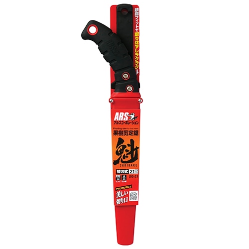 アルス独自の研磨目立てを採用し、果樹を中心とした幅広い園芸向け用途に対応した仕様の刃です。特に常緑樹の様な密集した枝の剪定に向いています。研磨目立てを採用する事により刃先の板厚が薄く、根元は刃先に比較して厚く設定できるため抜けが良くなり、目詰まりもしにくい刃になります。複数種類のベルト通しに対応します。落下防止のストラップ用の穴を柄に採用しています。
