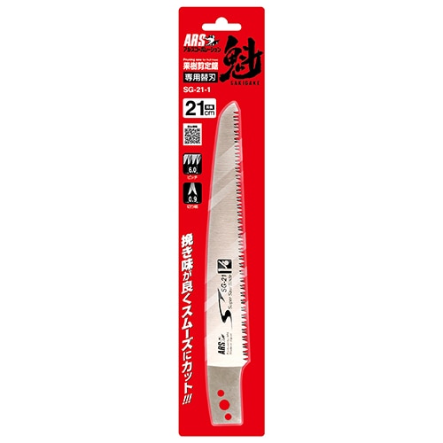 アルス独自の研磨目立てを採用し、果樹を中心とした幅広い園芸向け用途に対応した仕様の刃です。特に常緑樹の様な密集した枝の剪定に向いています。研磨目立てを採用する事により刃先の板厚が薄く、根元は刃先に比較して厚く設定できるため抜けが良くなり、目詰まりもしにくい刃になります。