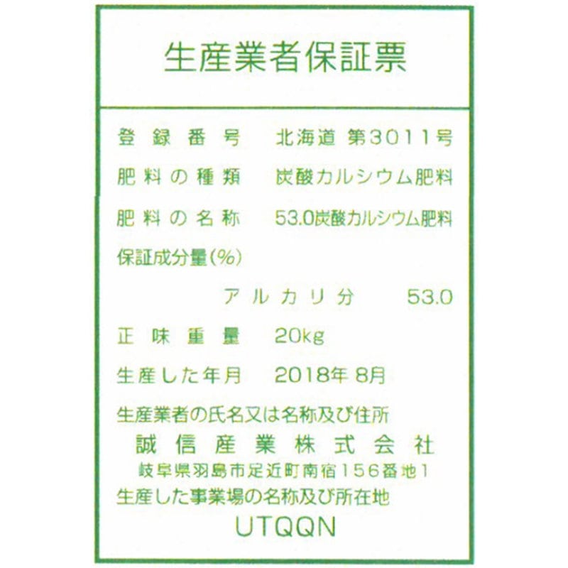 酸性土壌の改良とカルシウム補給に使用します。保証成分はアルカリ53%。