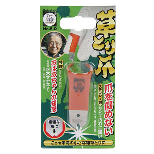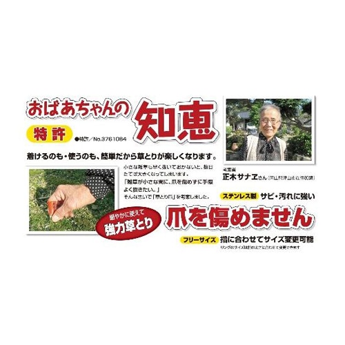 2cm未満の小さな雑草とりに便利です。リングは指に合うよう調整できます。根の間に差し込む2山型で、複雑な根に最適です。サビや汚れに強いステンレス製です。