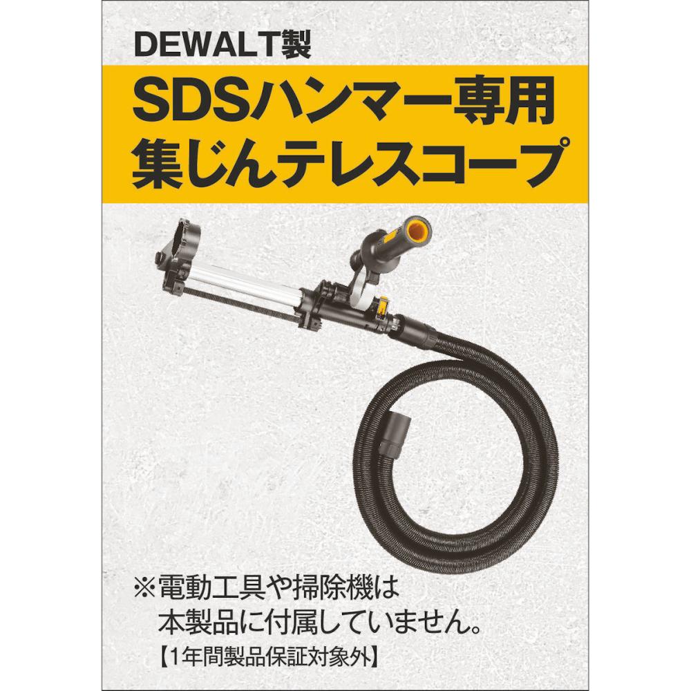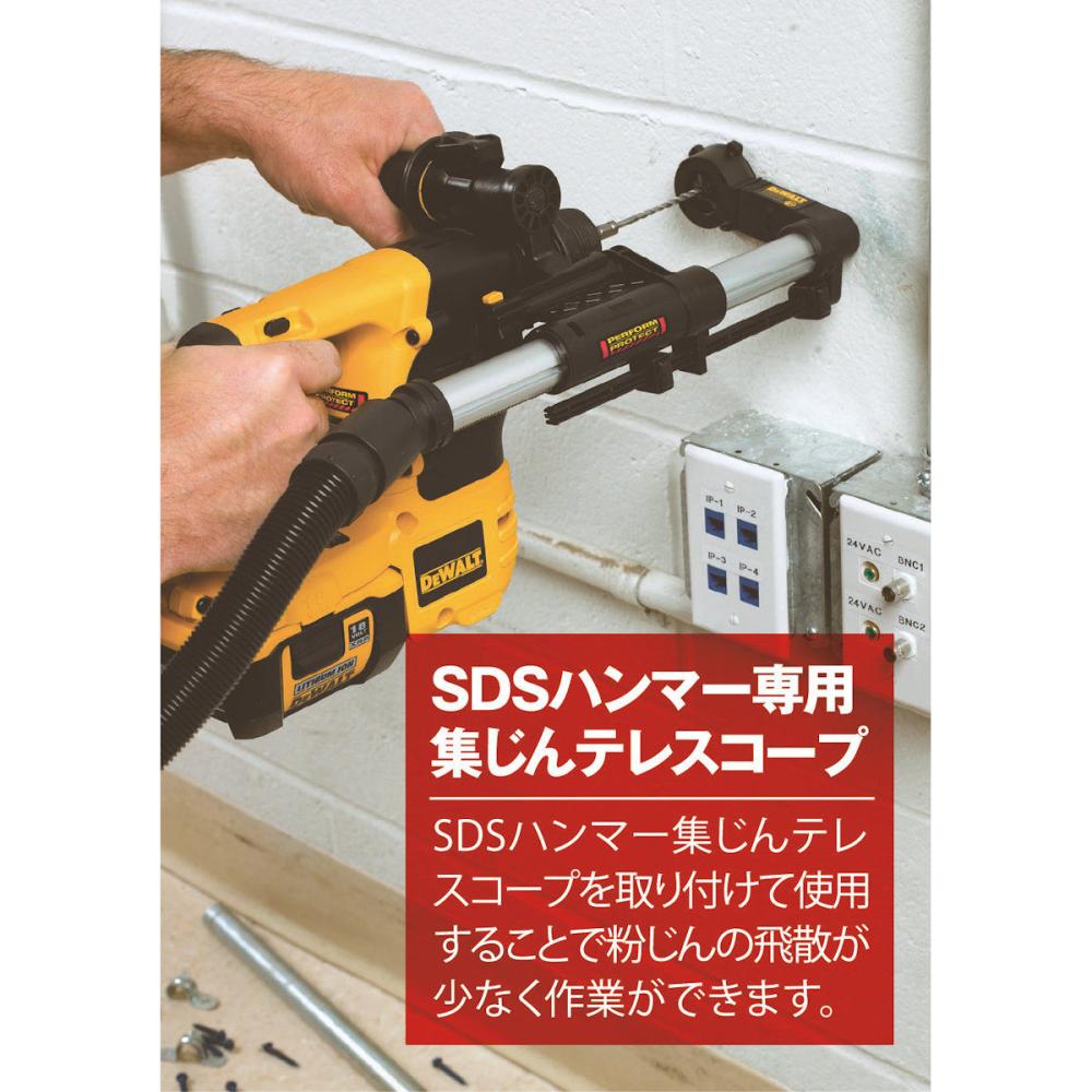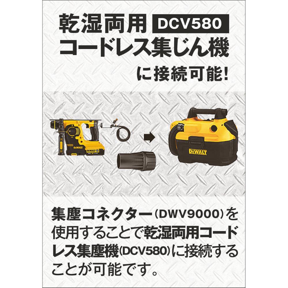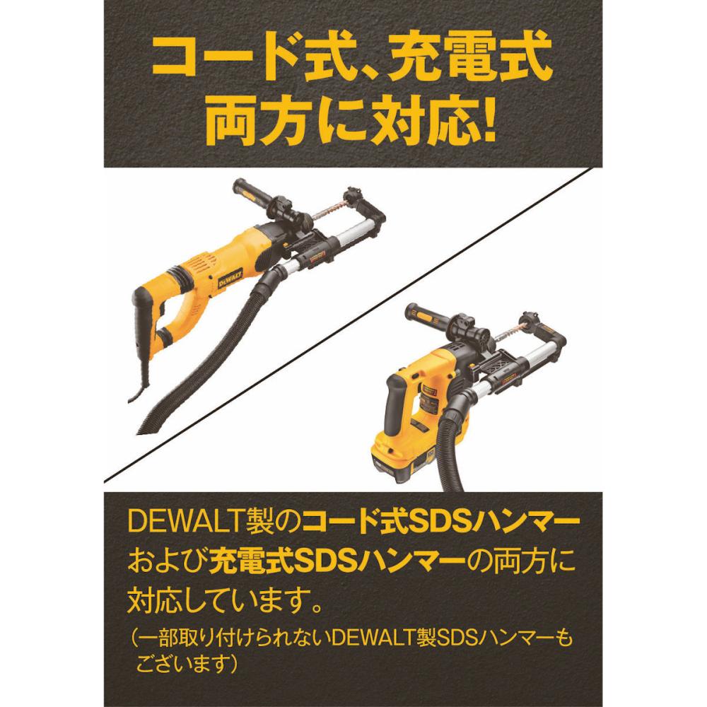 "●穴あけ時の粉塵を軽減 ●DCV580(18V乾湿両用集塵機)へ接続可能 ●穴あけ中の集じんを効率的に行うことができます。 ●視認性を維持するためのコンパクトな設計と、ユーザーの疲労を最小限に抑えるための非常に軽量な設計 ●長さ100cmの頑丈なゴム製ホース付属"
