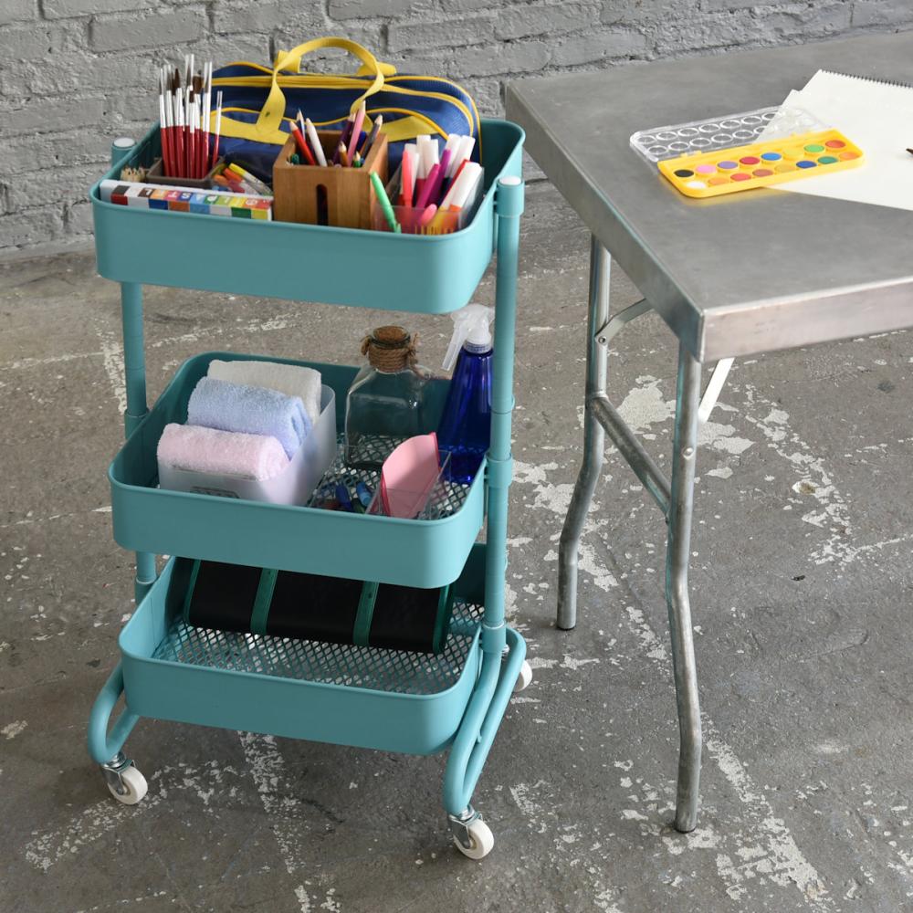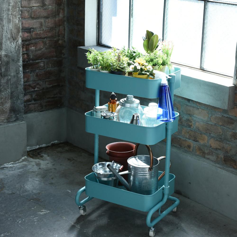 ■上から放り込める、バスケットタイプのキャスター付きワゴン ■バスケットの底は、野菜やタオルの収納にも合う、通気性の良いメッシュタイプ。 ■3つのバスケットはモノに合わせて、2.5cm間隔、23段階で高さを選んで設置可能 ■重量キャスターで、重いモノが載ってもスイスイ移動