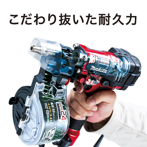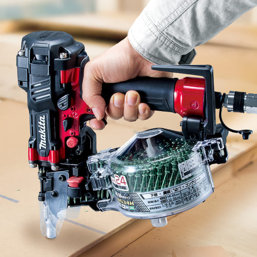 ●使用空気圧力:1.18~2.26MPa。 ●釘装てん数:ワイヤ釘200~400本。シート釘200本。 ●使用釘長さ:ワイヤ釘32~50mm、シート釘19~50mm(ナロー)27~50(ワイド)。 ●使用ホース内径:マキタ高圧エアホース4.0mm以上。