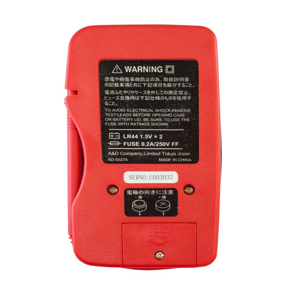 ●検波方式:平均値整流(MEAN)●最大表示:1999カウント●幅×奥行×高さ:60×20×113mm●電源:ボタン電池(LR44)×2個(付属)●測定項目:DCV、ACV、DCA、Ω、ダイオードチェック、導通チェック、電池チェック●レンジ切替:マニュアルレンジ●直流電圧最高確度±(0.5%rdg+5dgts)●交流電圧最高確度:±(1.2%rdg+5dgts)●直流電流最高確度±(1.0%rdg+4dgts)●抵抗最高確度±(1.0%rdg+4dgts)●直流電圧(V):400●交流電圧(V):400●交流電流(A):-●抵抗(Ω):2M●直流電流(mA):200●最大表示(カウント):●幅×奥行×高さ: