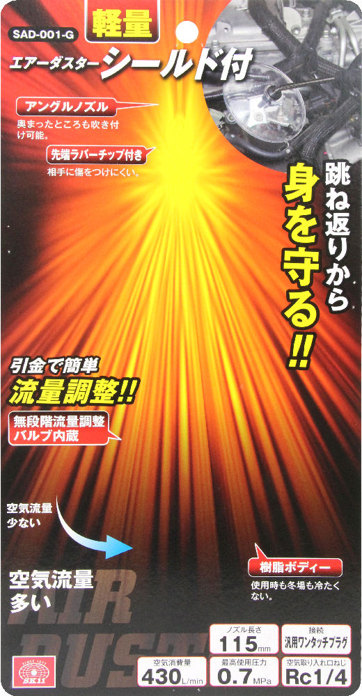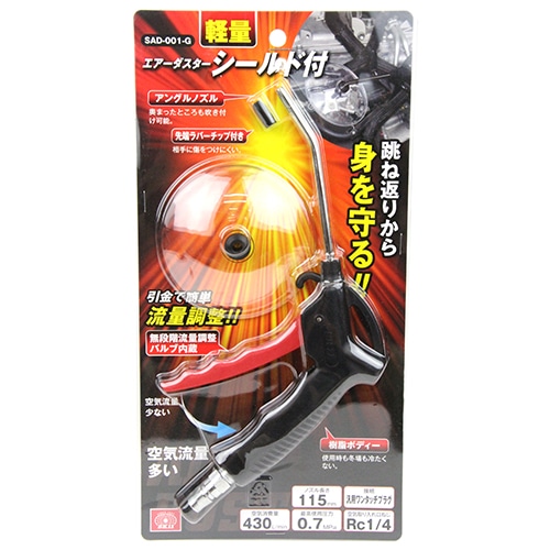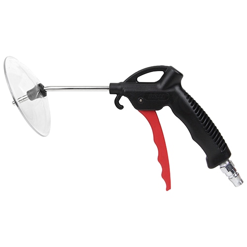 狭い場所での作業や液体を吹き飛ばす際の、作業者への粉塵や飛沫の跳ね返りを防ぎます。