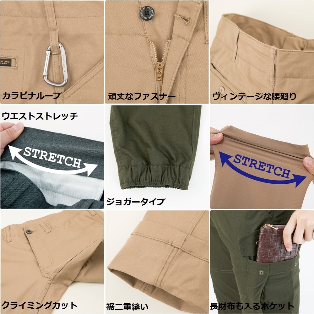 裾ゴム仕様でローカットからハイカットまで多様なシューズに対応し、運動するシーンでの高いパフォーマンスを発揮。サイドカーゴポケットは長財布が入る容量を確保。