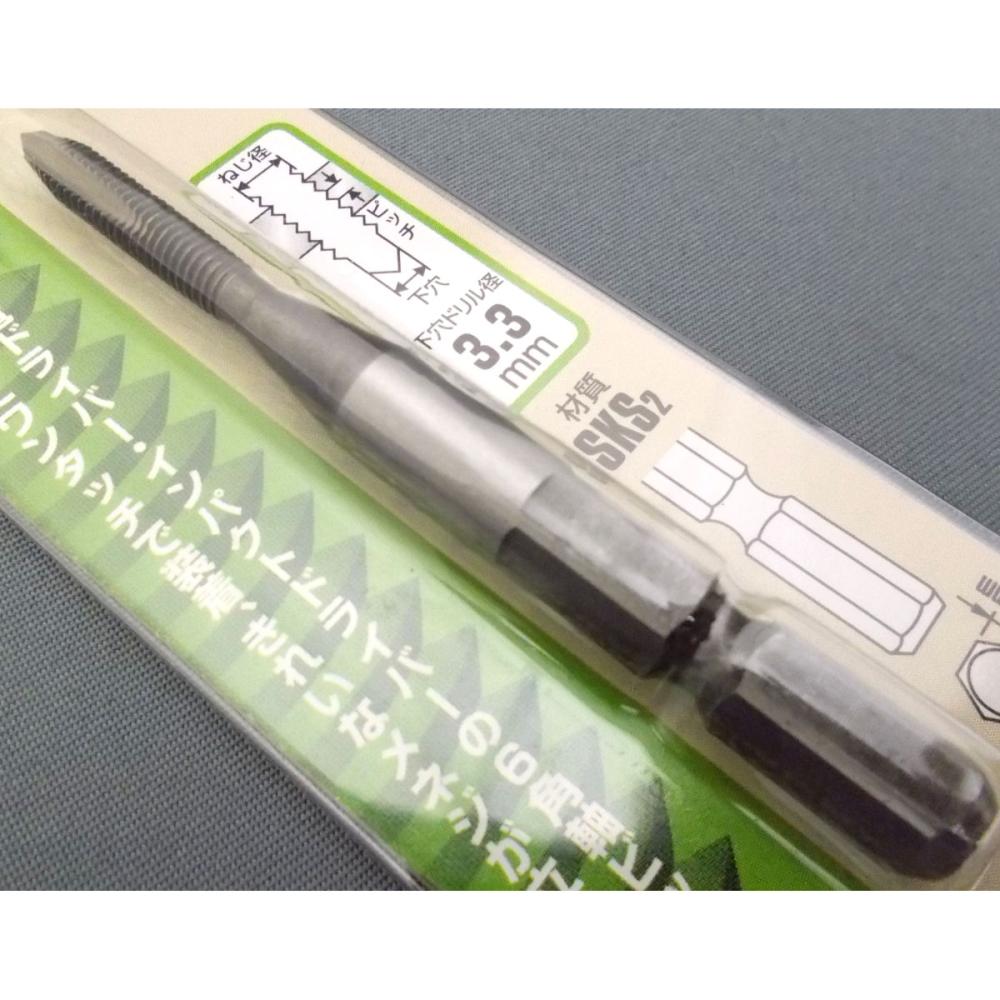 "被削材:一般鋼、真鍮、アルミ材 用途:一般用メネジ山形成。ネジ山のつぶれの補修。 使用方法:加工物にドリルで下穴をあけて面取りをし、電動工具にタップを取付け使用してください。(切削油を使いますとよりきれいに仕上がります)