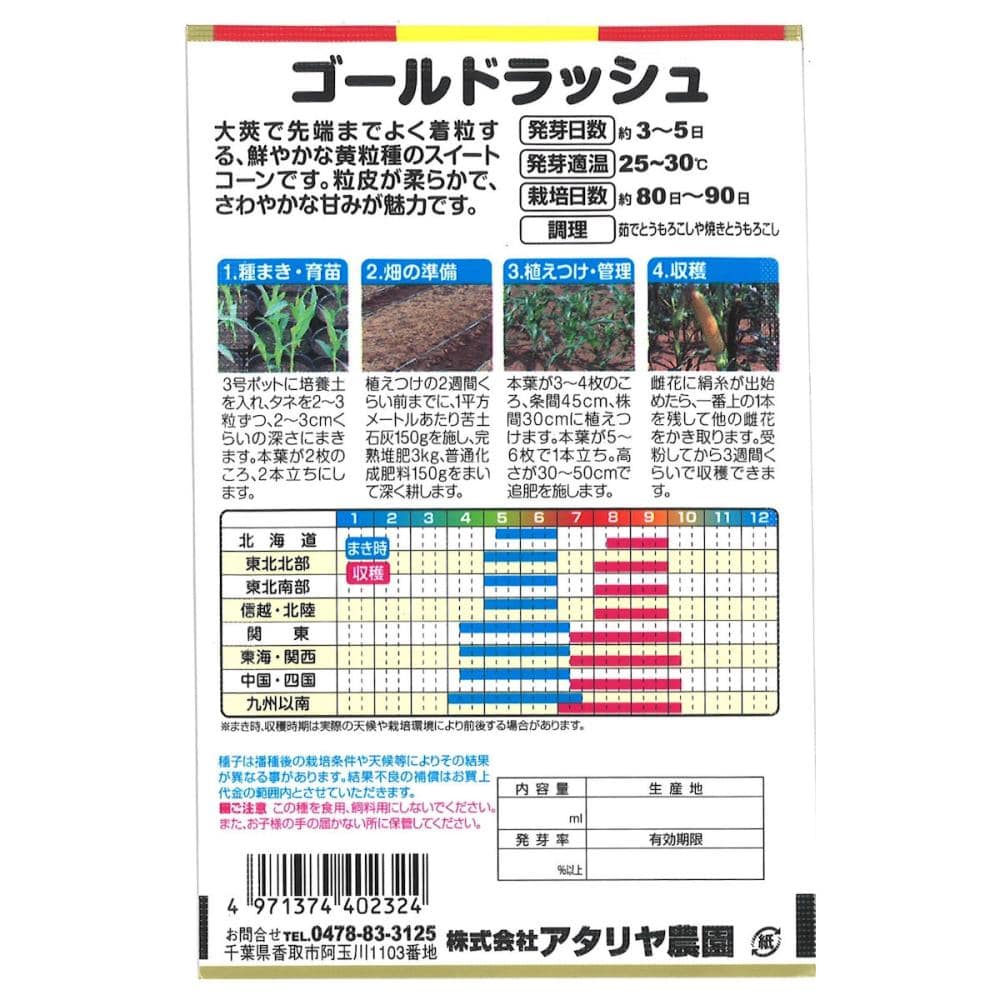 ●掲載のパッケージ画像(表側・裏側)に記載されている蒔き時期、収穫時期、発芽適温、発芽率、品種特長、その他注意事項をよくご確認の上、ご注文ください。