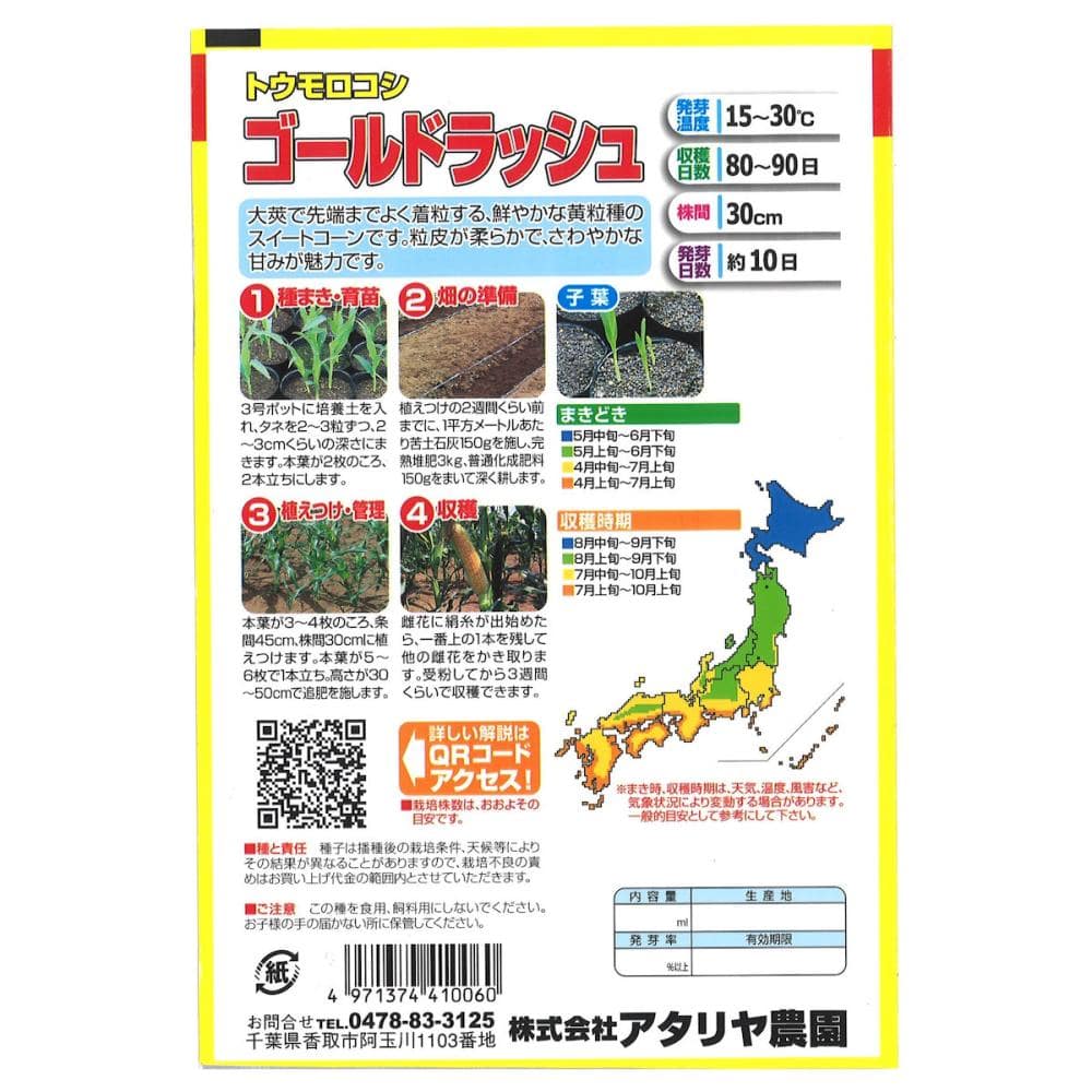 ●掲載のパッケージ画像(表側・裏側)に記載されている蒔き時期、収穫時期、発芽適温、発芽率、品種特長、その他注意事項をよくご確認の上、ご注文ください。