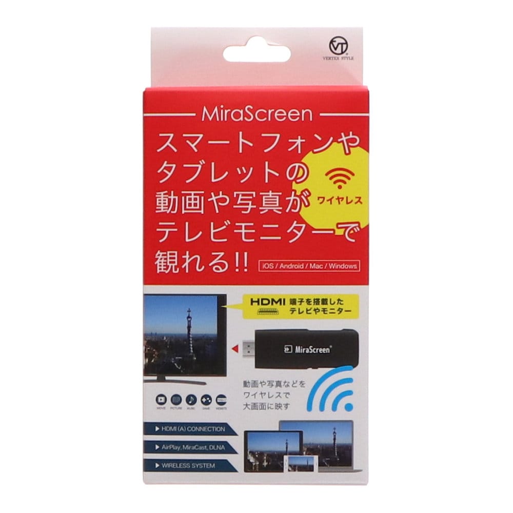 ■HDMI端子搭載のテレビやモニターに「ミラスクリーン」を接続し、簡単な設定をするだけでスマホやタブレットの画面を大画面で観賞できるワイヤレススクリーンレシーバー