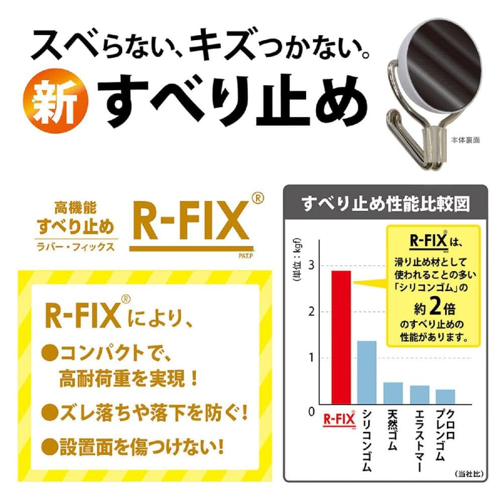裏面の滑り止め「R-FIX」がマグネットフックをスチール面からずり落ちをガードします。