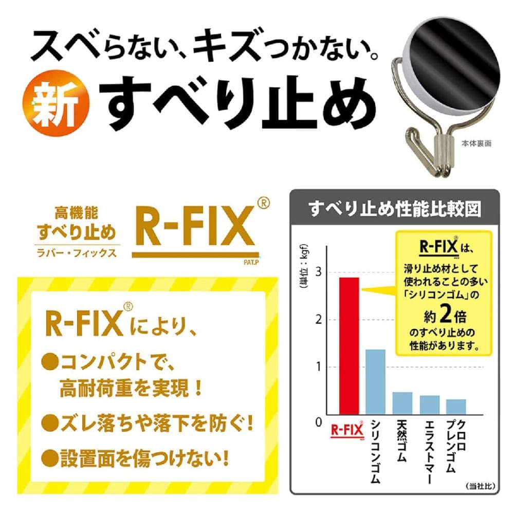 裏面の滑り止め「R-FIX」がマグネットフックをスチール面からずり落ちをガードします。