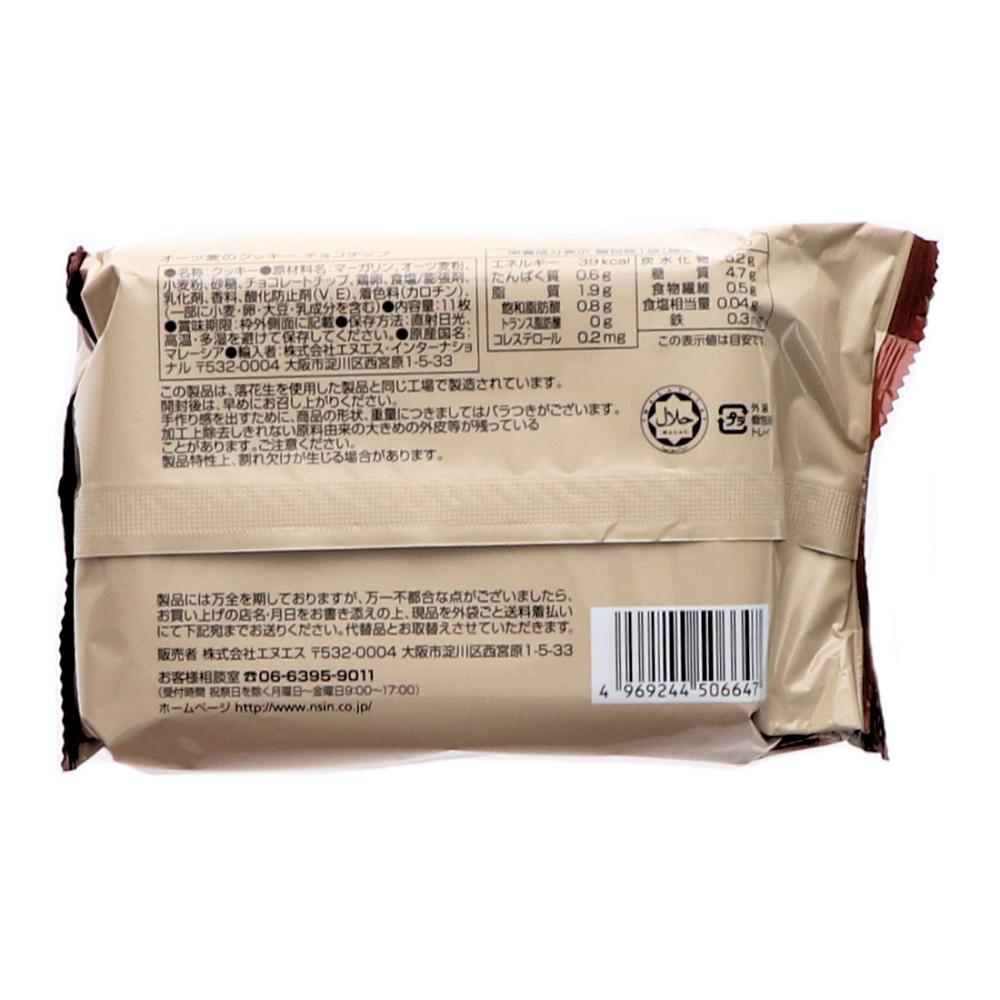 【原材料名】マーガリン、オーツ麦粉、小麦粉、砂糖、チョコレートチップ、鶏卵、食塩、膨張剤、乳化剤(大豆由来)、香料、酸化防止剤VE、着色料(カロチン)、(原材料の一部に乳成分を含む)