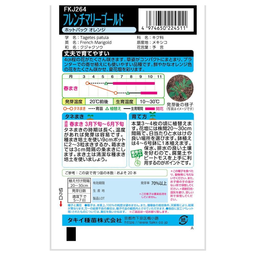 ●掲載のパッケージ画像(表側・裏側)に記載されている蒔き時期、収穫時期、発芽適温、発芽率、品種特長、その他注意事項をよくご確認の上、ご注文ください。