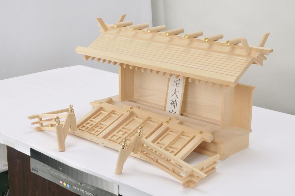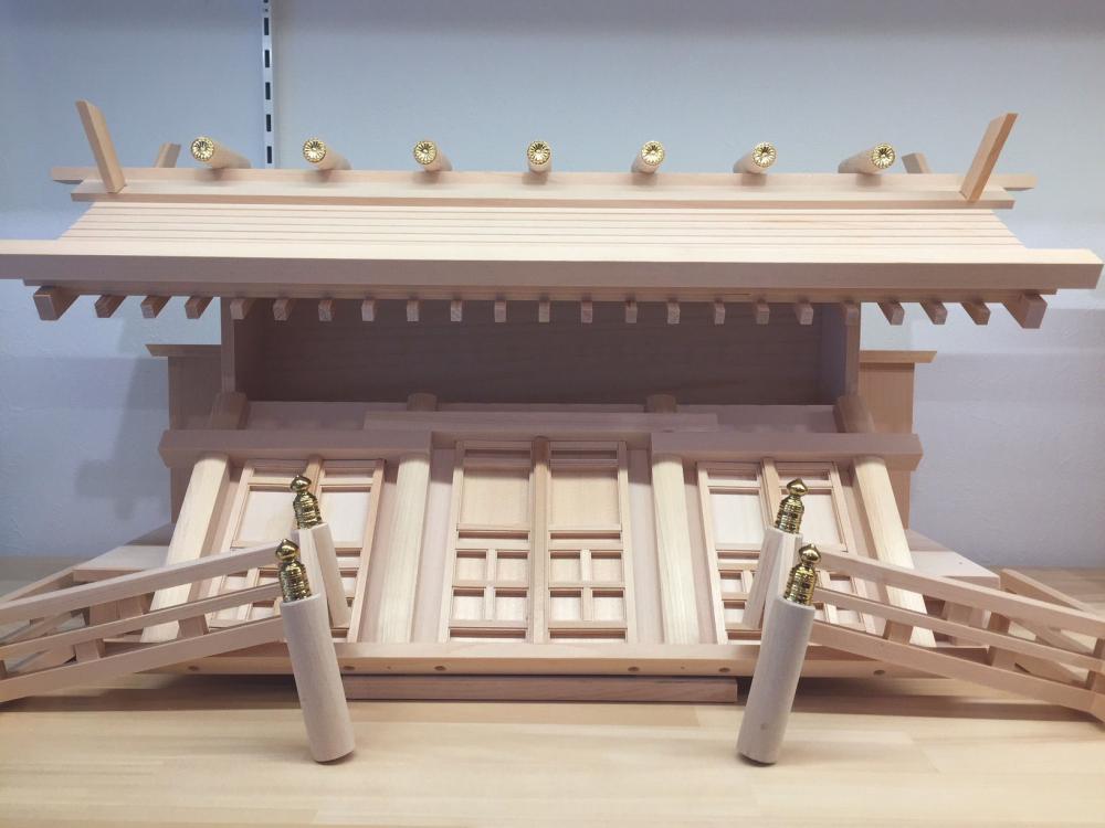 最高級桧の木曽桧製神棚です。 神棚の高さが32cmと低くなっていますので、高さに余裕が無い場所にも設置することができます。 扉には関東地方で人気のある唐戸と言われる細工を施しました。 欄干にも特別な仕上げを施し、三段の組高欄(くみこうらん)と言われる特別なデザインが用いられています。 木曽桧製。前面の扉を外す事により、お神札をお納めする事が出来ます。 【お神札を入れる扉内の高さ】
