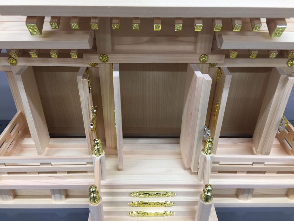 現在の住宅事情に合った低床タイプの神棚です。 裏屋根が外れますので、大きなお神札でも簡単にお納めできます。 ※北海道地域は販売対象外となります。ご了承ください。