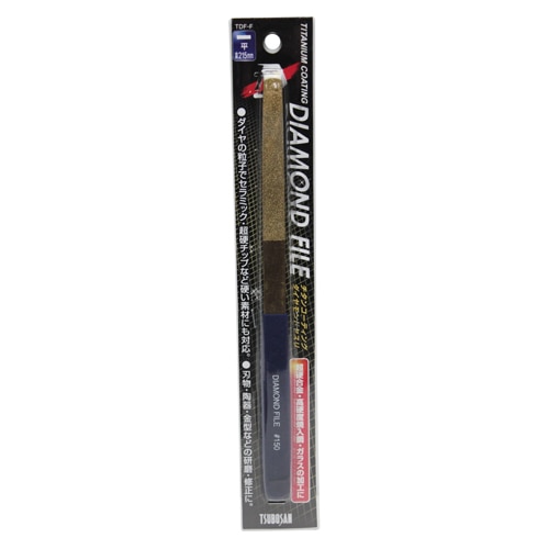 通常のダイヤモンドヤスリにチタンコーティングを施して、耐久性が向上しております。普通のヤスリで売れ筋の215mmサイズの大きさを使用しています。