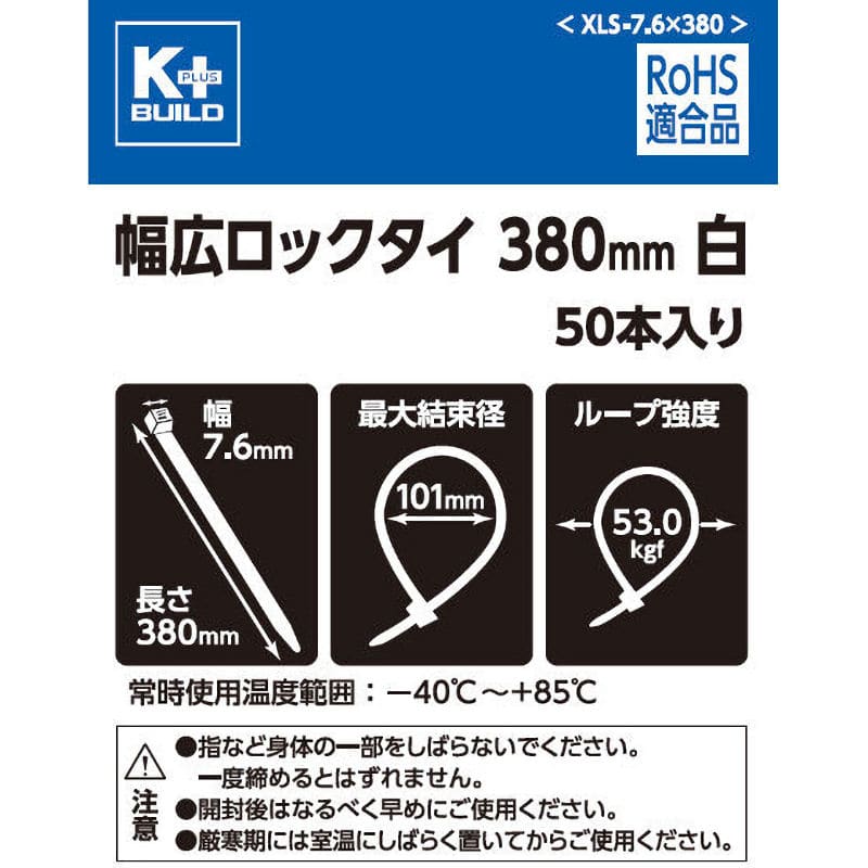 K+BUILD 幅広ロックタイ XLS-7.6×380 白 50本入り