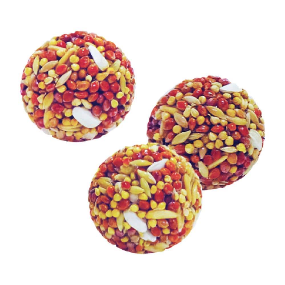 小・中型のインコ類が大好きな素材をボール状に固めたおやつ。乳酸菌(フェカリス菌)を配合。