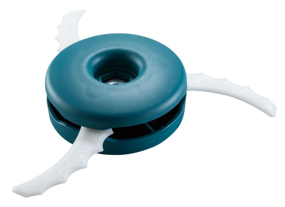 草が絡みにくい曲線ブレード:ブレード形状を曲線にすることで、負荷の高い作業での回転低下時に、刃物が本体に納まるため、草が絡みにくい