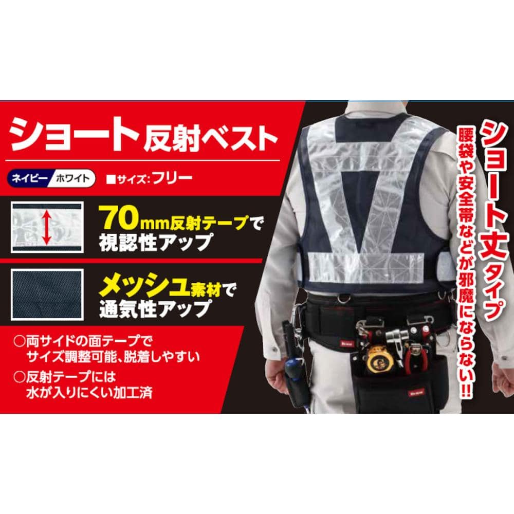 コメリ ショート反射安全ベスト ネイビー×ホワイト
