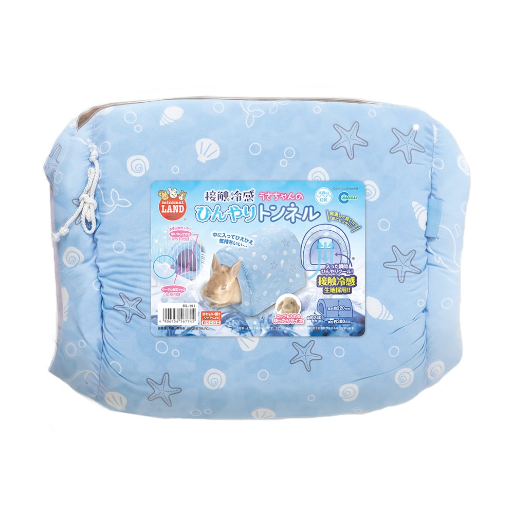 接触冷感生地使用のうさぎ用トンネルです。取り外せるマット、ケージ固定用ヒモ付。