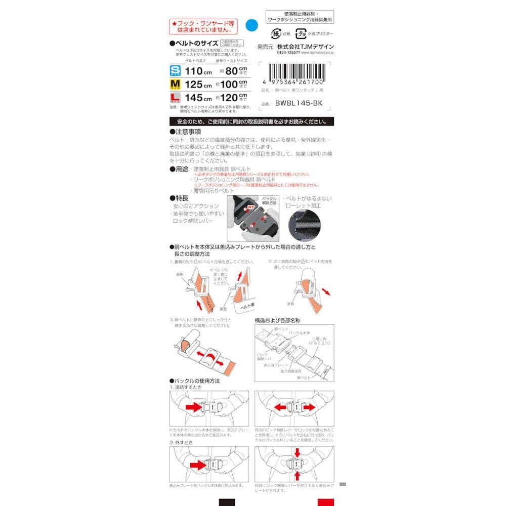 タジマ 胴ベルト アルミワンタッチ黒バックル L 黒 BWBL145-BK
