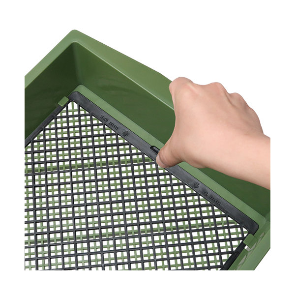 中の網をスライドさせるだけで、簡単に目の大きさを変更できます。 目の大きさを変えたい場合でも、わざわざ替アミを持ち運ぶ必要がありません。 全体が樹脂で出来ているため非常に軽く、また錆びの心配もありません。 樹脂の為、汚れた場合でも水洗いが可能です。