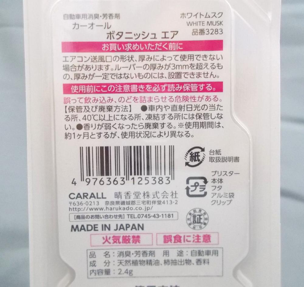 カーオール ボタニッシュエア エアコン取付タイプ ホワイトムスク