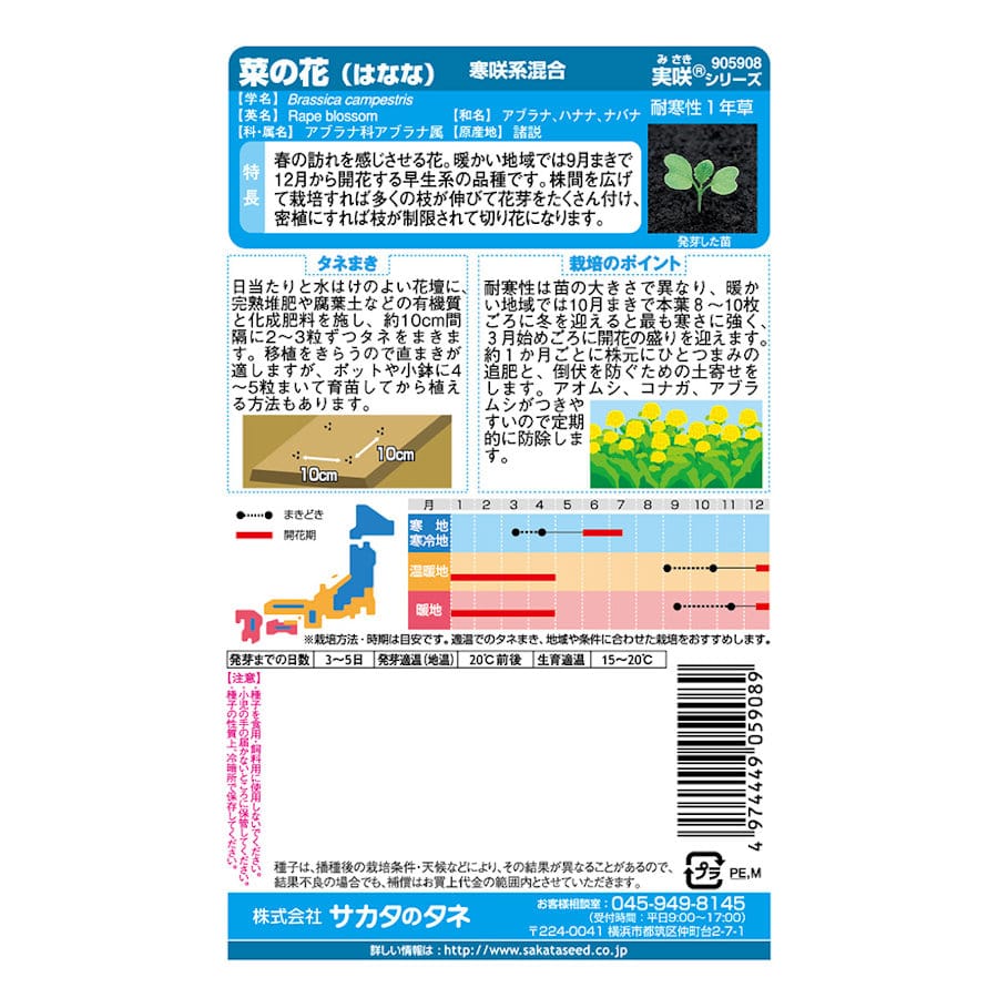 春の訪れを感じさせる花。暖かい地域では9月まきで12月から開花する早生系の品種です。株間を広げて栽培すれば多くの枝が伸びて食用に、密植すれば枝が制限されて切り花になります。