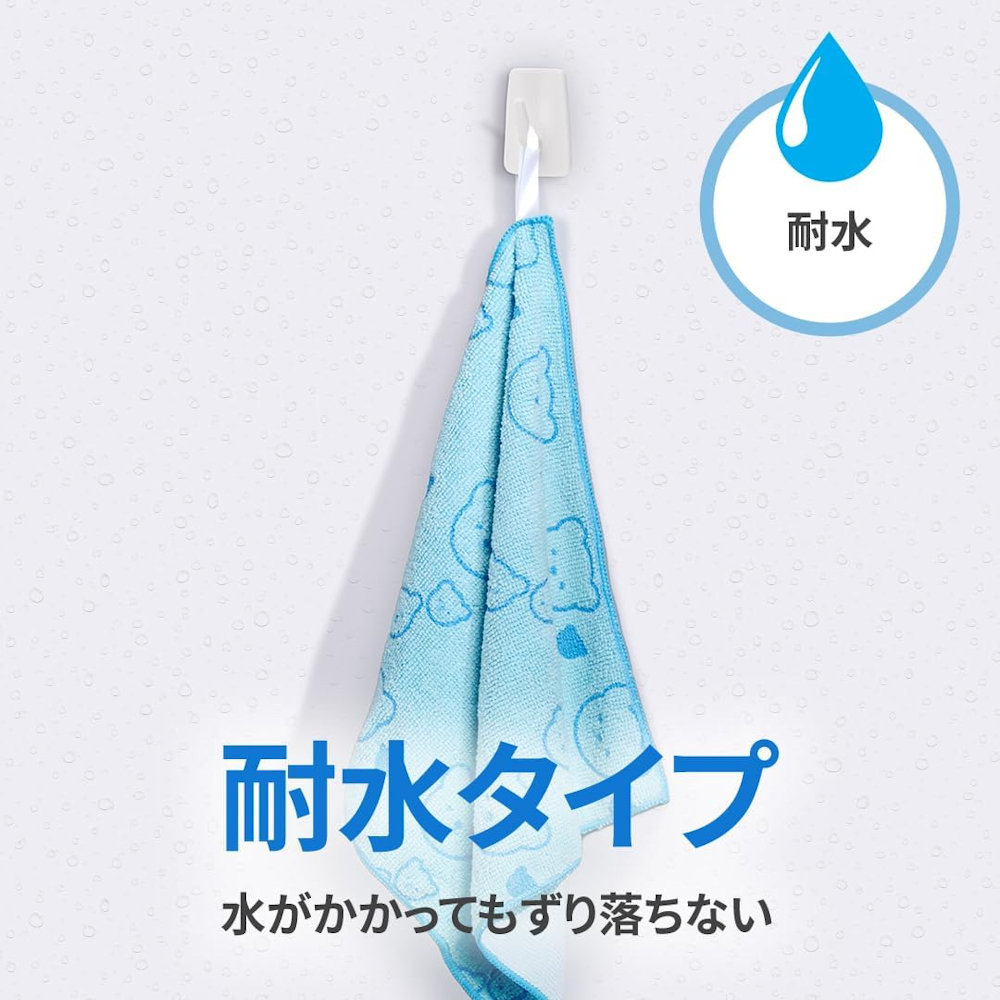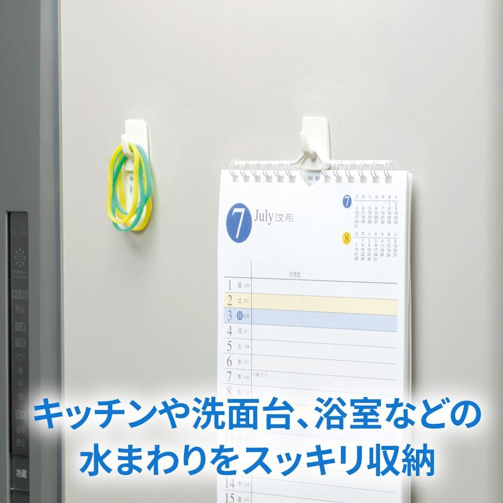 材質/フック本体:スチロ-ル樹脂、タブ:ポリエチレン基材、シリコーン系粘着剤