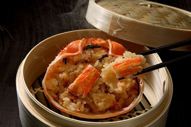 国産の「紅ズワイ蟹」を贅沢に使用し、蟹の風味を甲羅に詰め込んだおこわです。袋から取り出し、電子レンジ等で温めてお召し上がりいただけます。