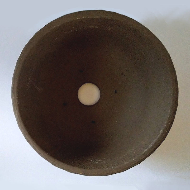 焼き物の産地として有名な愛知県常滑焼の植木鉢です。 1100度ほどで焼成され、寒冷地にも強く、木の小手で粘土を成形することにより通気性の良い粗い感じに仕上げてあります。鉢底穴の他に植物を固定するための針金穴も開いています。