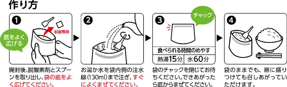 ■原材料名:もち米(国産)、味付乾燥具材(水煮たけのこ、デキストリン、乾燥にんじん、水煮ぜんまい、水煮わらび、乾燥きくらげ、風味調味料、魚介エキス、還元水あめ、かつお調味粉末、食塩、こんぶエキス、本みりん)/調味料(アミノ酸等)、酸化防止剤(ビタミンE)