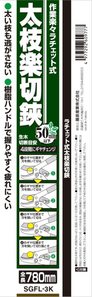 ラチェット機構で複数回に分けて切るので太い枝も楽に切断。