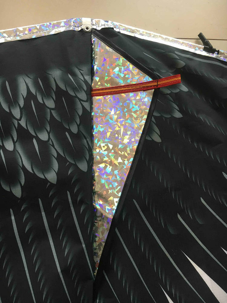従来のカイト鷹よりも強度がアップし、防鳥効果をより増すために羽根と胴体部分に反射シート材を取り付けました。