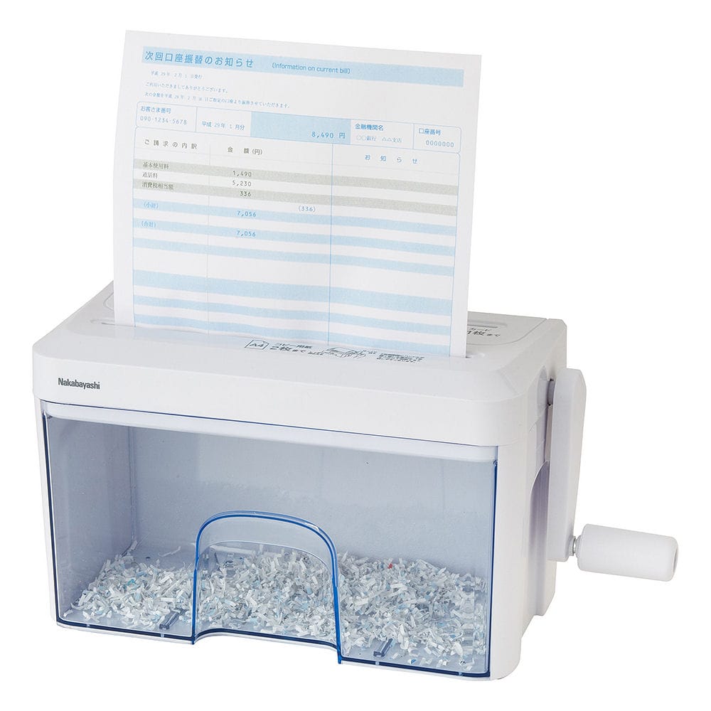 最大細断枚数:A4コピー用紙2枚/郵便はがき1枚、細断寸法:約2×10mm(マイクロカット)、ダストボックス容量:約3.9リットル