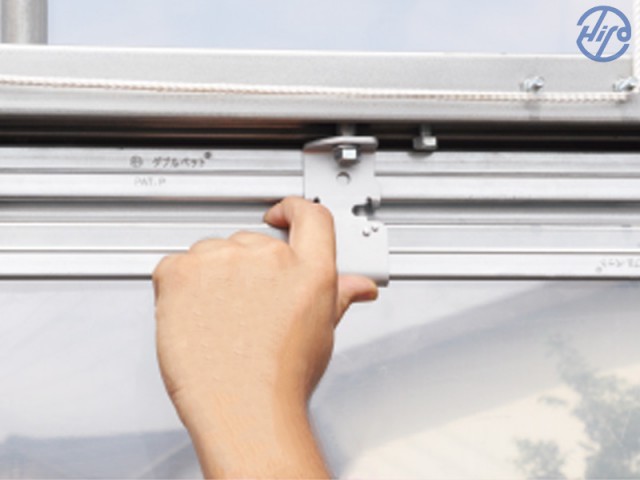上桟がダブルペット仕様となり、ドアが取り付いた状態でもフィルムの展張、張り替えが可能です。