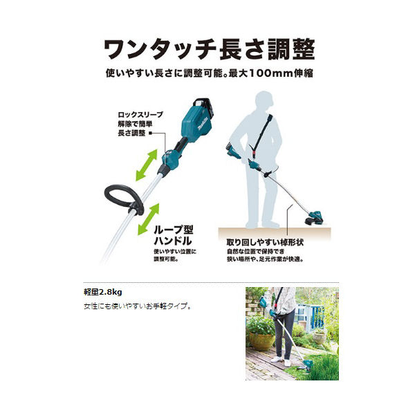 標準付属品:バッテリBL1830B、充電器DC18SD、肩掛けバンド、保護メガネ、六角棒スパナ、飛散防護カバー、樹脂刃、アクセサリバッグ