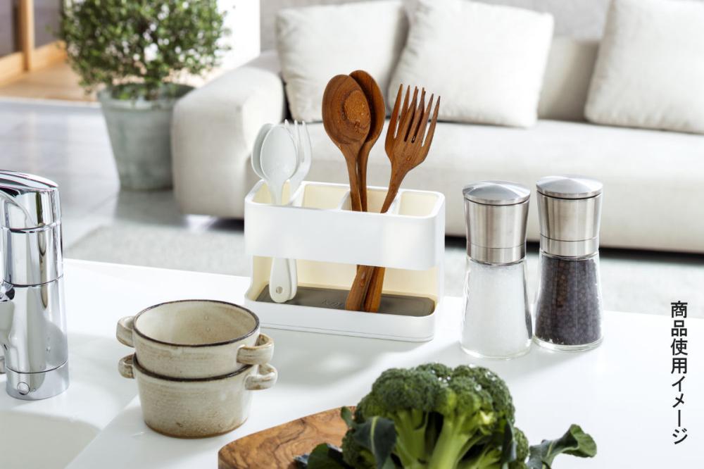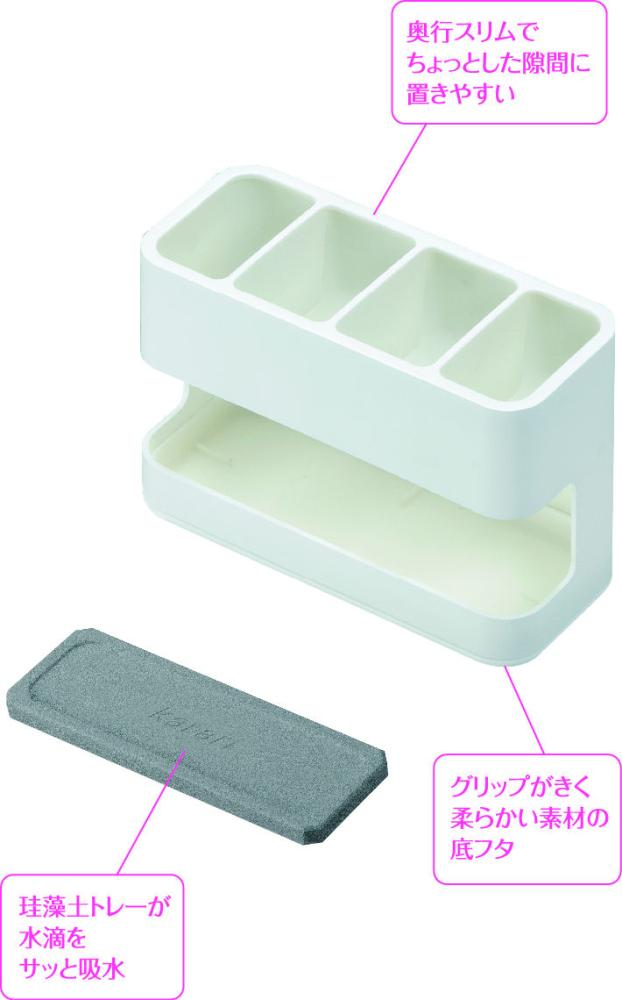 超吸水トレーを搭載したカトラリースタンド 珪藻土トレーが水滴をサッと吸水
