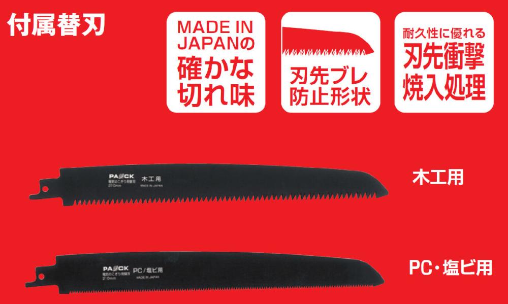 ・切断能力目安:庭木剪定…直径65mm、木材…60mm、塩ビ管…直径110mm