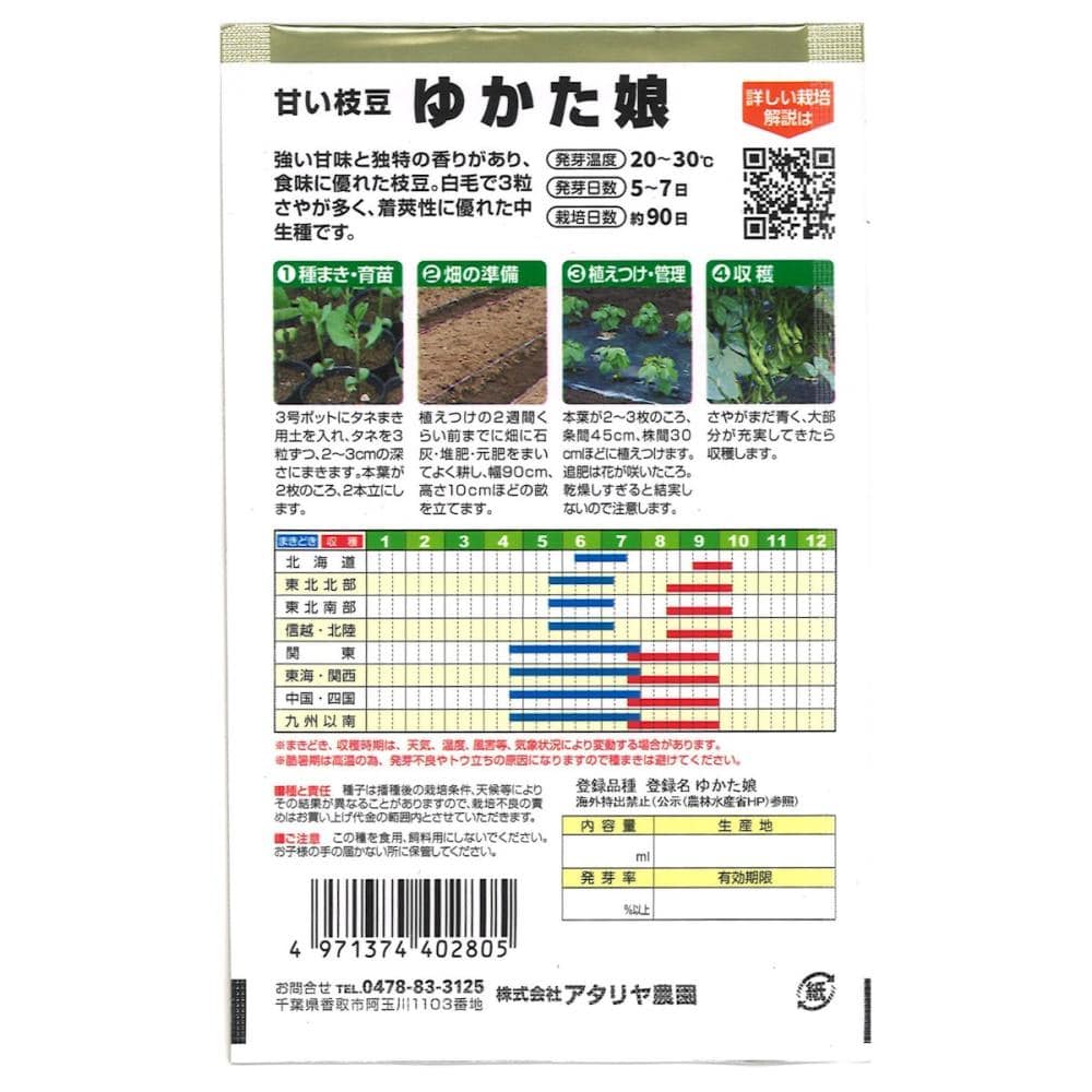 ●掲載のパッケージ画像(表側・裏側)に記載されている蒔き時期、収穫時期、発芽適温、発芽率、品種特長、その他注意事項をよくご確認の上、ご注文ください。