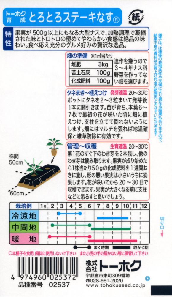 ●掲載のパッケージ画像(表側・裏側)に記載されている蒔き時期、収穫時期、発芽適温、発芽率、品種特長、その他注意事項をよくご確認の上、ご注文ください。