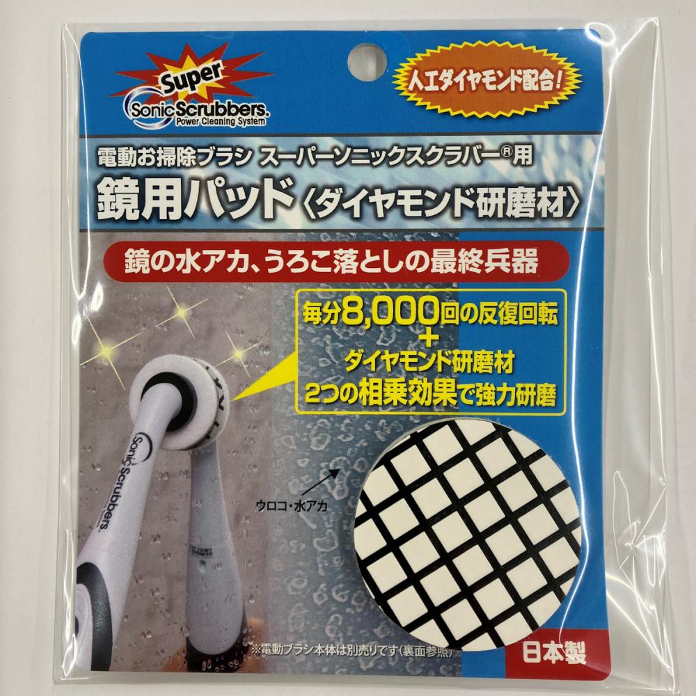超硬質な人工ダイヤモンドの研磨材を配合している為、毎分8000回の反復回転との相乗効果で、鏡の頑固な水アカ、ウロコ汚れを水だけでしっかり落とすことができます。