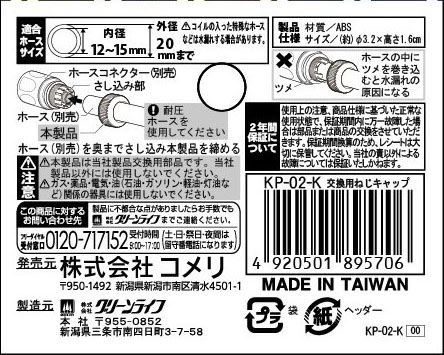材質/ABS 適合ホース/内径12~15mm、外径20mmまで ※コイルの入った特殊なホースなどは水漏れする場合もあります。 ※この商品だけでホースを固定することはできません。