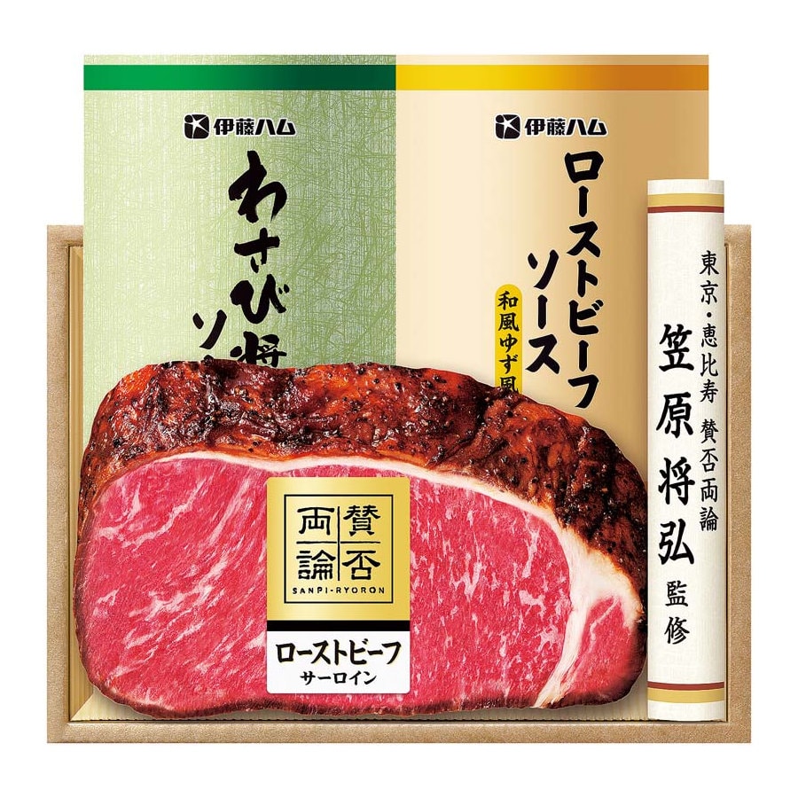 【セット内容】サーロインローストビーフ350g、わさび醤油ソース60g、ローストビーフソース和風ゆず風味60g
