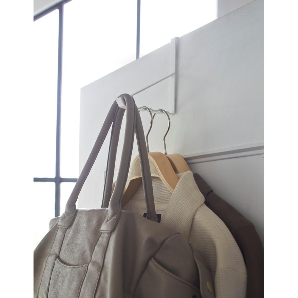しっかりした作りでコートやバッグまで掛けられるドアハンガー。室内干しにも活躍します。