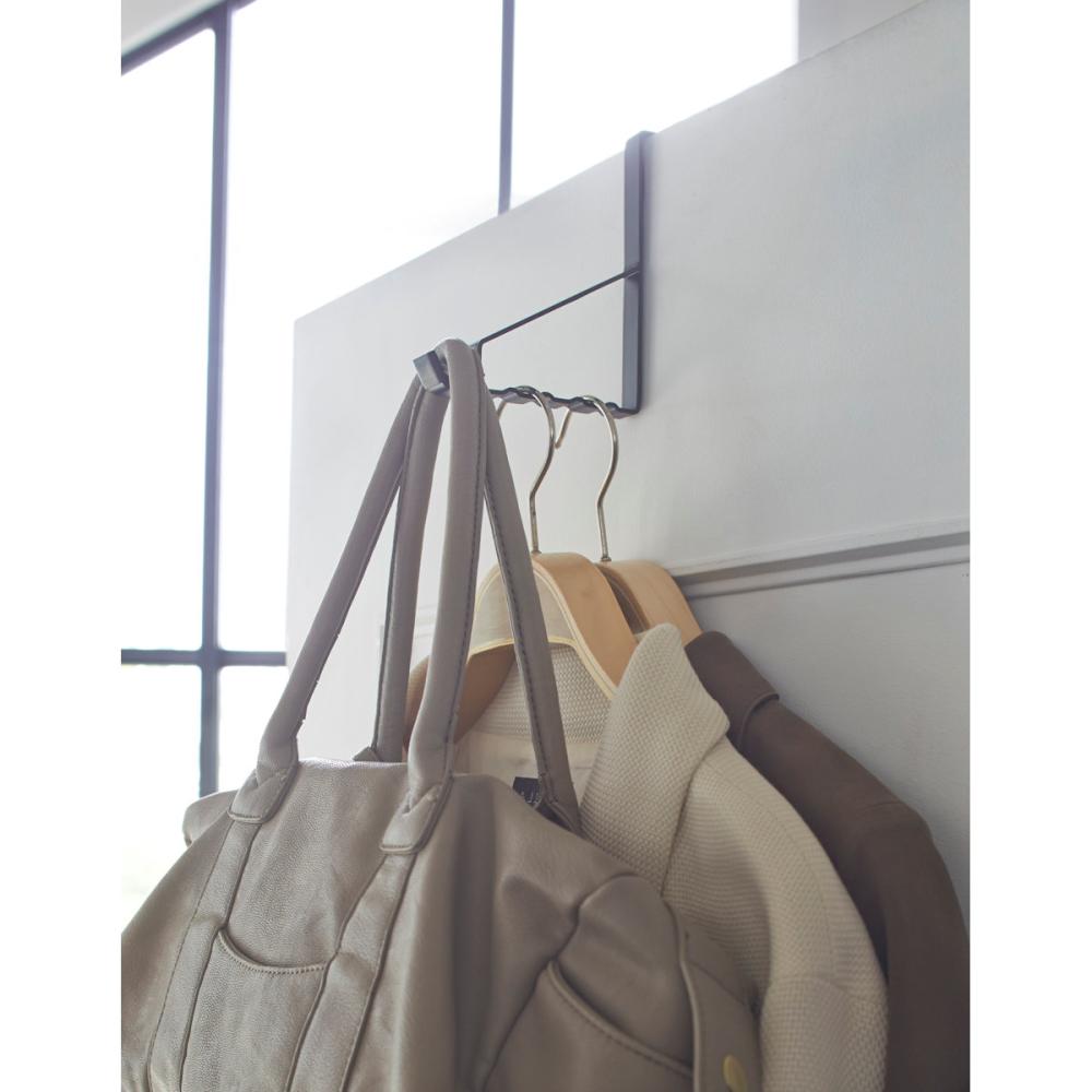 しっかりした作りでコートやバッグまで掛けられるドアハンガー。室内干しにも活躍します。