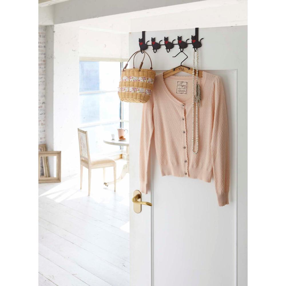 猫が並ぶ横型ドアハンガー。 服やアクセサリーのコーディネート用にも活躍。